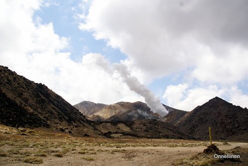 それにしても、あの山の頂上付近に見えるものは何??まさか雪じゃないよねえ??